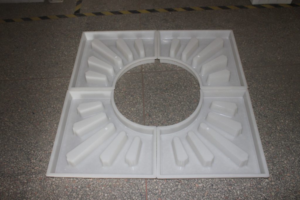 太陽型水泥樹圍模具主要采用了PP聚丙烯塑料為原料,經(jīng)注塑加工完成。主體結(jié)構(gòu)由四塊拼接組成,由于塑料模具表面由類似陽光一樣的線條設(shè)計(jì),遂得名太陽型樹圍模具。不要小看這一條條的線條設(shè)計(jì),除了在美觀結(jié)構(gòu)上有所表現(xiàn),最為關(guān)鍵的是在實(shí)際成品的空隙之處方便綠草生長,增強(qiáng)土壤結(jié)構(gòu),對于樹木的保護(hù)更為有力。