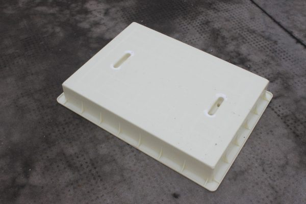 溝蓋板模具的使用對于各種水泥基建設效率的提高是相當顯著的,圖中為國家電力部門專用的電力溝蓋板模具,采用ABS工程塑料加工而成,主要設計以二孔方格防滑設計,在電力溝蓋板模具中間更是印有“弱電電纜”字樣及電力圖標。