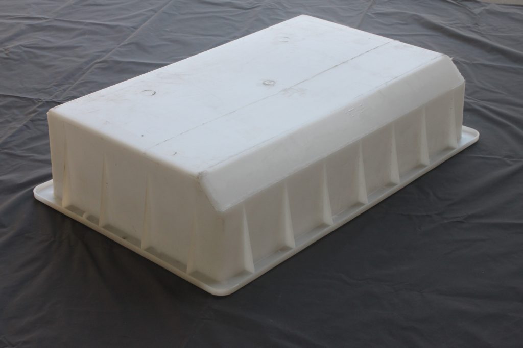 其中,水泥馬路牙子模具采用高韌性的聚丙烯塑料注塑加工而來(lái),鑒于水泥澆筑對(duì)于模具承重的不同,在馬路牙子模具四周分別布置粗細(xì)不一的加強(qiáng)筋結(jié)構(gòu)。整體呈倒角防撞型設(shè)計(jì),有效避免水泥馬路牙子由于直接鋒利結(jié)構(gòu)滑坡汽車輪胎等不利安全的因素。