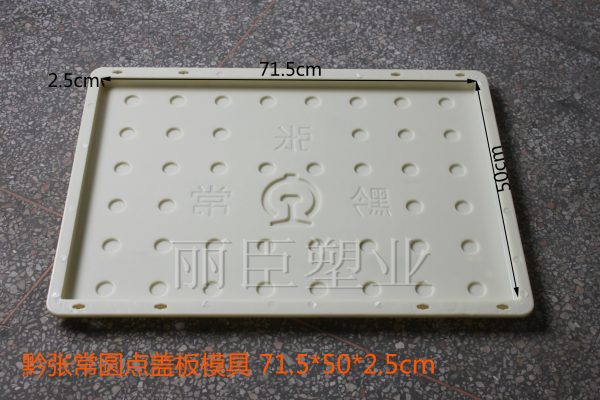 黔張常高速鐵路專用水泥蓋板模具,主要樣式印有鐵路圖案標志及“黔張常”字樣,整體以圓點防滑設(shè)計,采用此水泥蓋板模具所澆筑成型水泥蓋板表面圓點突兀,圖案及字樣清晰且脫模更易,是一款非常優(yōu)質(zhì)的ABS塑料蓋板模具。