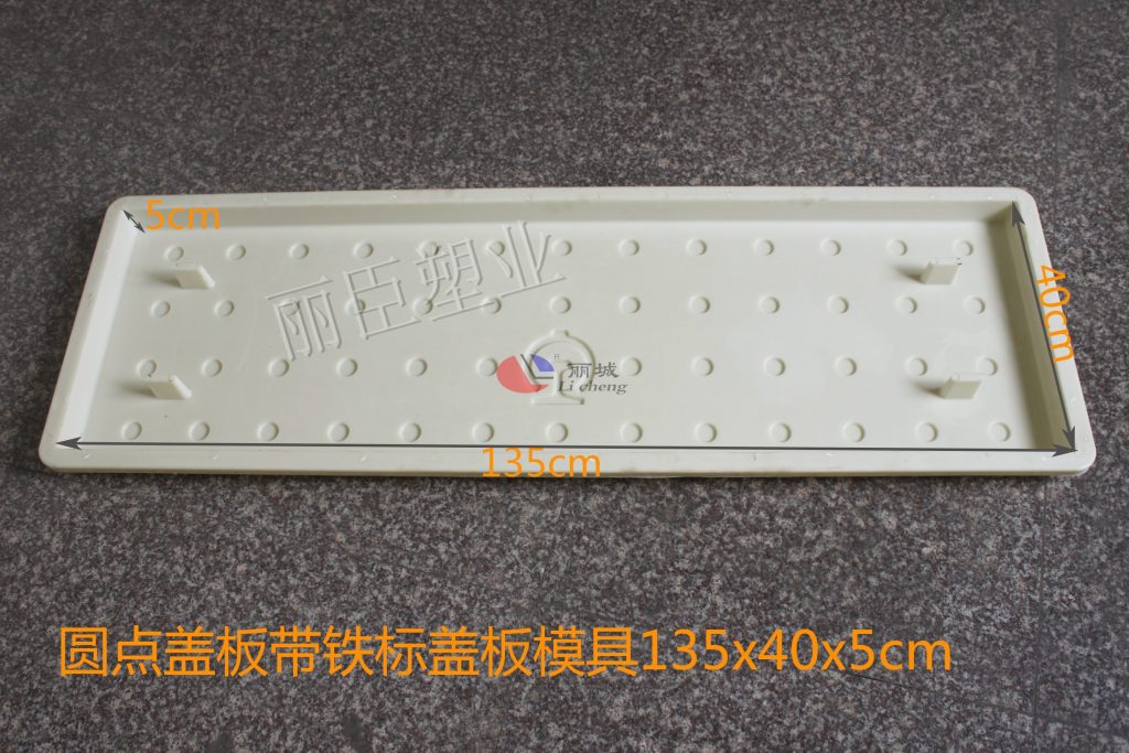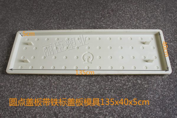 這款四孔圓點(diǎn)蓋板模具的尺寸為長135cm、寬40cm、高為5cm,用料上采用穩(wěn)定性較強(qiáng)的ABS為注塑原料,在澆筑水泥制品過程中能更好的保證砼制品模具不會(huì)發(fā)生變形,在對(duì)蓋板模具的四周添加了加強(qiáng)筋,小三角樣式更好的支撐塑料蓋板模具邊緣。
