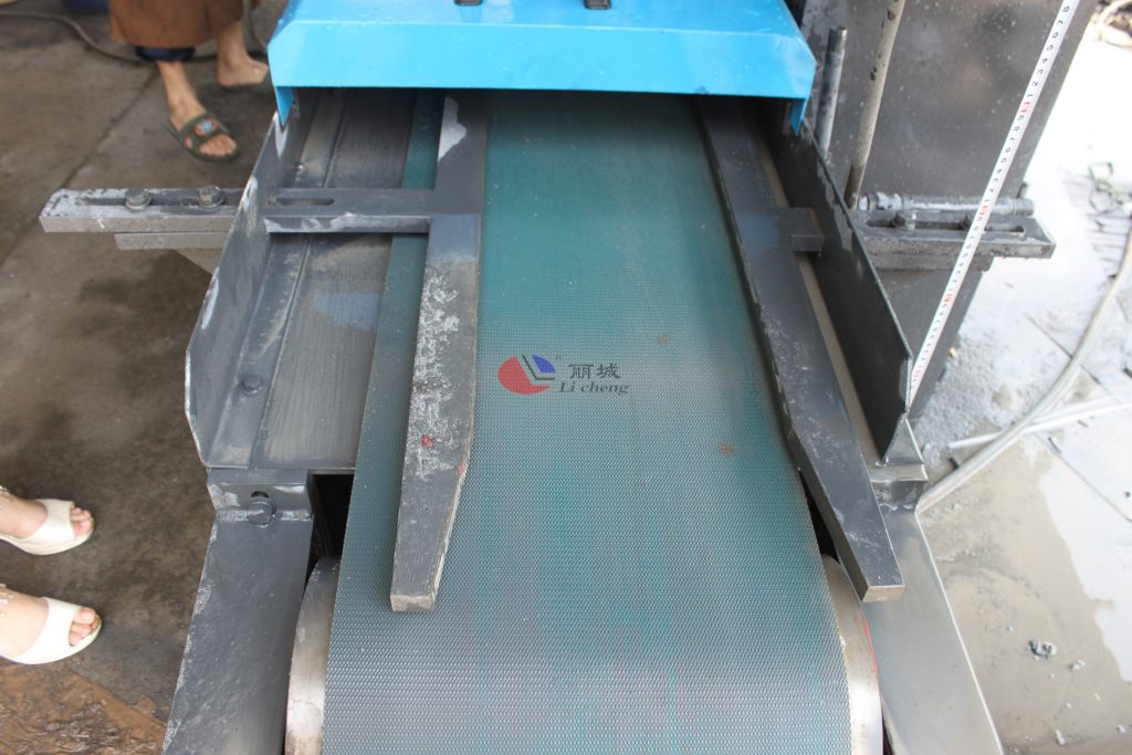 制作這臺(tái)多功能成型機(jī)的技術(shù)員在對(duì)這臺(tái)機(jī)器出廠前進(jìn)行了最后一步的調(diào)試,將澆筑成型的水泥磚放置輸送帶上,成型機(jī)入口處與出口處都有配置供水系統(tǒng),防止在制作過(guò)程中塵土飛揚(yáng),能對(duì)水泥制品打磨過(guò)程中其表面更為整潔統(tǒng)一。經(jīng)過(guò)平磨系統(tǒng)對(duì)水泥模具澆筑成型的水泥制品進(jìn)行磨形,后進(jìn)入第二系統(tǒng)對(duì)水泥磚塊制品就進(jìn)行拉條紋,這款多功能側(cè)石二工位條紋成型機(jī)打磨成型的條紋彩磚的外觀以34條紋為主。打磨成型后在有輸送帶將水泥磚運(yùn)輸出來(lái)。其使用過(guò)程中為防止施工過(guò)程中的安全事故的發(fā)生,通過(guò)使用電控箱的方式來(lái)對(duì)機(jī)器進(jìn)行急停控制。