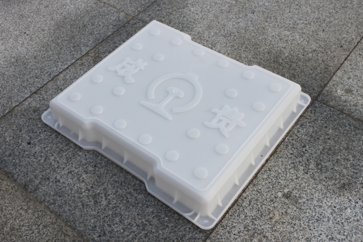 鐵路蓋板模具中圓點設計可以有效的起到步行防滑作用,鐵路圖標及“成貴”字樣標示此款產(chǎn)品為中國鐵路成貴高鐵線專用溝蓋板塑料模具。