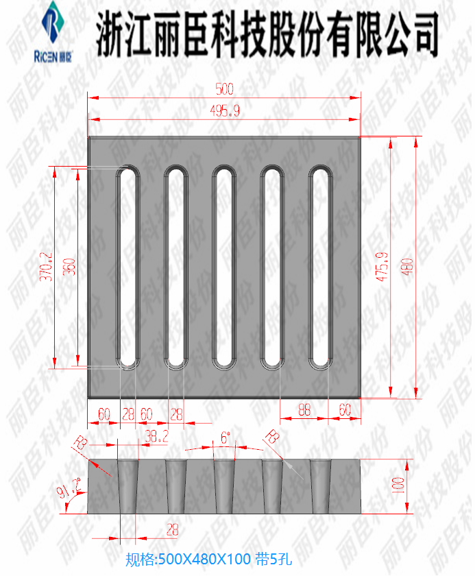 帶有五孔的雨水蓋方形塑料模具,尺寸為50x48x10.